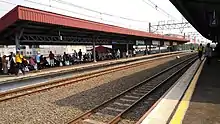 Kampung Bandan Station (KPB)[1] is a railway station located in North Jakarta. This station is located close to WTC Mangga Dua. This station has elevated and ground-level tracks. The elevated level tracks are used by trains between Jakarta Kota and Tanjung Priuk, as the Tanjung Priuk Line. The ground tracks are used by trains going to Cikarang as the Cikarang Loop Line. This station has been hit by floods numerous times.