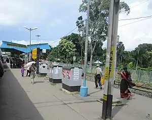 Kanchrapara railway station is a Kolkata Suburban Railway station in Kanchrapara on the Sealdah–Ranaghat line. It is situated in North 24 Parganas district, on the outskirts of Kolkata in the state of West Bengal, India. It mainly serves the Greater Kanchrapara town region and the surrounding areas.[1] This is a considerably important station on the Sealdah–Ranaghat line because of the existence of the Kanchrapara Railway Workshop. There were plans of making this crowded station a junction stop, but this has not been initiated yet, mainly due to the less space available to expand the station. The distance between Sealdah railway station and Kanchrapara station is about 45 km.