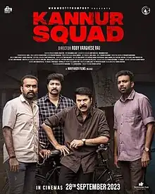 Kannur Squad is a 2023 Indian Malayalam-language crime thriller film directed by Roby Varghese Raj in his directorial debut and written by Muhammed Shafi and Rony David Raj. The film stars Mammootty, alongside Rony David Raj, Azees Nedumangad, Shabareesh Varma, Kishore and Vijayaraghavan. It is produced by Mammootty under the banner of Mammootty Kampany and is based on the real story of a team of police officers who were part of the Kannur Squad, a crime investigation unit, formed by former Kannur SP S. Sreejith IPS.[6]