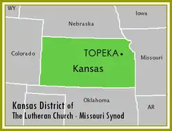 The Kansas District is one of the 35 districts of the Lutheran Church – Missouri Synod (LCMS). The district includes approximately 160 Kansas congregations and missions, subdivided into 16 circuits, as well as 44 preschools and 14 elementary schools. Baptized membership in district congregations is approximately 55,800.[1]
