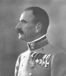 When World War I began Tersztyánszky, commanding IV Corps, served as part of 2nd Army in the Balkans theatre.[5] Later that year the unit was transferred to the Eastern Front to fight in Galicia and Poland. In late spring 1915 he was given command of the short-lived Army Group Tersztyánszky, which soon became the 3rd Army, in Serbia. However, later that year he lost command after clashing with Hungarian Prime Minister István Tisza.[1][6]