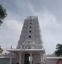The Karmanghat Hanuman Temple is a Hindu temple in Hyderabad in the state of Telangana, India. The presiding deity of the temple is Hanuman as Dhyana Anjaneya. The temple complex also houses other deities viz. Rama, Shiva, Saraswati, Durga, Santoshimata, Venugopala, and Jagannath. The temple is located at Karmanghat, near Santoshnagar and closer to the Nagarjuna Sagar Ring Road.[1]