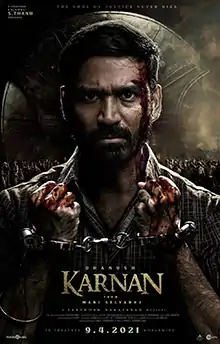 Karnan (ⓘ) is a 2021 Indian Tamil-language action drama film directed by Mari Selvaraj, and produced by Kalaipuli S. Thanu. The film stars Dhanush, Rajisha Vijayan (in her Tamil debut), Lal, Yogi Babu and Natarajan Subramaniam. The film features music composed by Santhosh Narayanan, cinematography handled by Theni Eswar, and editing done by Selva R. K. Loosely influenced by the 1995 Kodiyankulam caste violence,[2] the film features the titular character Karnan, hailing from a conservative background, fighting for the rights of his people.[3]