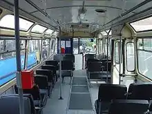 The Karosa ŠM 11 is completely different from its predecessor, Škoda 706 RTO, which had engine in its front and two doors. ŠM 11 is model of Karosa Š series. It was derived from Karosa ŠL 11 intercity bus, and also unified with long-distance coach Karosa ŠD 11. Its body is semi-self-supporting with frame and engine with automatic gearbox in the middle, right between the wheels. Only its rear axle is propulsed. Front axle is independent, rear axle is solid. All axles are mounted on air suspension. On the right side are three folding doors (first are narrower than middle doors). Leatherette seats are used for the seats inside the ŠM 11. Driver's cab is not separated from the rest of the vehicle. In the rear part is room for a pram or wheelchair.