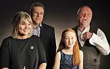 ![]() Crew of Katie Morag receiving Peabody Award in 2016. Left to right: executive producer Lindy Cameron, writer Sergio Casci, actor Cherry Campbell, director Don Coutts | |