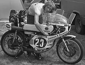 Yamaha chose Andersson to help develop their TA125 racebike for the 1971 season.[5] He went on to finish second in the 1972 on the water-cooled development model designated YZ623C, and claim the 1973 125cc World Championship.[2][5] In 1974, he successfully defended his title by winning five races along with two second-place finishes.[2]
