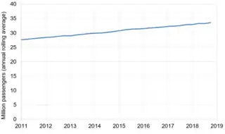 - ↑ "Passenger journeys by train operating company – Table 12.12 | ORR Data Portal". dataportal.orr.gov.uk. Archived from the original on 25 July 2019. Retrieved 25 July 2019.