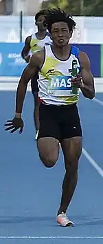 Khairul Hafiz bin Jantan (born 22 July 1998) is a Malaysian sprinter, competing in events ranging from 100 metres to 400 metres. He was the former Malaysian 100 metres outdoor record holder with a time of 10.18 seconds. Khaiful Hafiz, representing Melaka, had broken the record set by Watson Nyambek (10.38 set in 1998) [5] during the Malaysia Games in Kuching in 2016.[6][7][8][9] His personal best of 20.90 seconds in the 200 metres was the Malaysian national junior record.