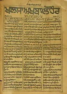 The newspaper was published with effect from 13 June 1886 through the efforts of Bhai Gurmukh Singh from Lahore.[1] It was a weekly newspaper of the Khalsa Diwan society being published in Lithography and in Gurmukhi script. Its first two editors were Giani Jhanda Singh Faridkot and Sardar Basant Singh. Later on, it was handed over to Giani Ditt Singh. The newspaper continued to be published until 1889. After this, its publication stopped for sometime due to a legal suit filed by the Amritsari party regarding the publication of a play called Swapan.[5][6]