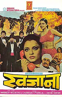 Khazana (transl. Treasure) is a 1987 Indian Hindi-language action-adventure film, produced by Subhash Kapoor under the Subhash International banner and directed by Harmesh Malhotra. It stars Randhir Kapoor and Rekha, while Jeetendra, Rishi Kapoor have special appearances and music was composed by Laxmikant–Pyarelal.[1][2] The movie is loosely based on the 1984 Kannada movie Gandu Bherunda which in turn was inspired by the 1969 American film Mackenna's Gold.[3]