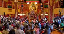 Khenpo Rinpoche lived until he was 95 years old (96 by Tibetan reckoning, which counts age from conception) and continued active teaching and his ministerial schedule to the end. For example, over May 17–19, 2013 he transmitted the Khenpo Gangshar mind teachings ("Naturally Liberating Whatever You Meet," which he had received directly from Khenpo Gangshar)[3] and from July 13–21, 2013, he delivered the first-ever Spanish-language retreat and simultaneous webcast, attended in person by 60 Spanish-speaking pilgrims and across the internet by 1900 people from 39 countries.[4]