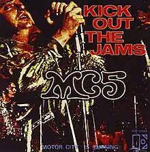 "Kick Out the Jams" is a song by MC5, released as a single in March 1969 by Elektra Records. The album of the same name caused some controversy due to inflammatory liner notes by the band's manager, John Sinclair, and the track's rallying cry of "Kick out the jams, motherfuckers!". According to guitarist Wayne Kramer, the band recorded this as "Kick out the jams, brothers and sisters!" for the single released for radio play; lead vocalist Rob Tyner claimed this was done without group consensus.[3] The edited version also appeared in some LP copies, which also withdrew Sinclair's excitable comments. The album was released in January 1969; reviews were mixed, but the album was relatively successful, quickly selling over 100,000 copies and peaking at #30 on the Billboard album chart in May 1969 during a 23-week stay.