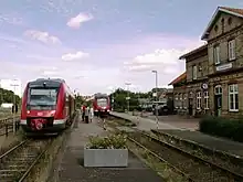 The line is operated with DBAG Class 648, and sometimes with coupled DB Class 628.