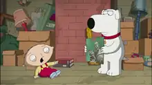 Brian shows Stewie the cover for Queen's album News of the World, which terrifies him. This subplot is based on creator Seth MacFarlane's fear of the cover when he was a child.