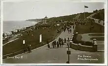 The original building was a bandstand funded in 1903–1904 by Thomas Dence (1840–1918), a local developer who had been involved in the Frome Park Estate in Stroud Green and roads in the parish of St Mary, Islington, and owned property in Herne Bay.[6][8][9][10][11] Dence had moved to Herne Bay for his health, bought the Downs, laid out roads at the top and built himself a house on Beacon Hill close by.[12] He conveyed the remaining sloping land back to the Council, and in 1901 and 1903 suggested plans for a bandstand.[3][4][12] He had in mind:
