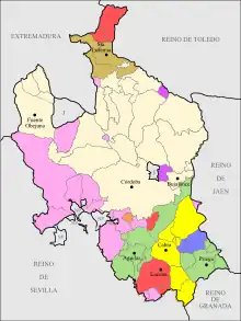 ![]() Map of the Kingdom of Córdoba, based on the Respuestas Generales del Catastro de Ensenada (1750-54). | |||||||||||