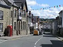 In the 1870s, an assessment was thus: "The trade of the town is chiefly with the agriculturists of the adjoining county of Radnor. There are two banking establishments, viz., the head offices of the Kington and Radnorshire bank (Messrs. Davies, Banks, & Davies), established in 1808, and a branch of the Midland Banking Company, Limited. There is an extensive iron foundry, nail, and agricultural implement manufactory carried on by Messrs. James. Meredith & Co., and the building and tanning trades are well represented. There are also some extensive corn mills and malt-houses. About four miles west of the town are the Old Radnor lime rocks, which are celebrated for their superior quality for building and for agricultural purposes. The market day is Tuesday, considerable business being transacted on that day in eggs, butter, poultry, &c., and is the mart to which the Welsh send their produce, to meet dealers who frequent this town from all quarters."[15]
