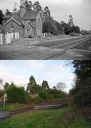 ![]() Kirby Muxloe station in 1967, after closure, and in 2018 | |
