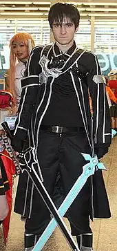 Character design by abec for the light novels, which include his dual swords, Elucidator and Dark Repulser