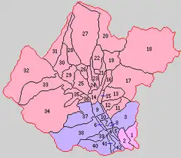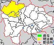 * yellow - areas formerly within the district borders during the early Meiji period