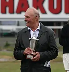Kjell Håkonsen (23 December 1935 – 18 April 2011[1]) was a Norwegian harness racing coach and coachman.[2] During his career, he had 5531 starts and won 1094 races. He is best known for having trained and coached Spikeld and Rex Rodney who have achieved many ranks as Norway's best racing horses of all time. He also trained one of Spikeld's sons, Spiker, who is seen as having great potential and is seen as having good breeding stock.