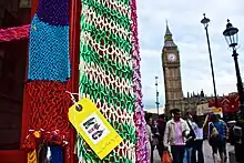 - ↑ "Storming London: Knit the City". Yarnbombing.com. 25 August 2009. Archived from the original on 20 July 2011. Retrieved May 1, 2011.