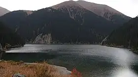 Kolsay Lakes National Park (Kazakh: Көлсай көлдері ұлттық паркі, Kölsai kölderı ūlttyq parkı) is located on the north slope of the Tian Shan Mountains, southeast Kazakhstan (10 km from the border with Kyrgyzstan). Often referred to as "Pearls of Tien Shan", the park's main feature are the Kolsay Lakes located between the Raiymbek District and Talgar District of Almaty Region. The scenic Lake Kaindy is also within the park.[1] The park boundary is 120 kilometres (75 mi) southeast of Almaty. Lakes of landslide-tectonic origin, approximately formed in 1887 and 1911 on the Kaindy and Kolsay rivers.