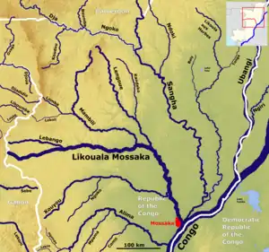 Likouala River confluence 0°45′05″S 16°38′10″E / 0.75138°S 16.63611°E / -0.75138; 16.63611 (Likouala River confluence)