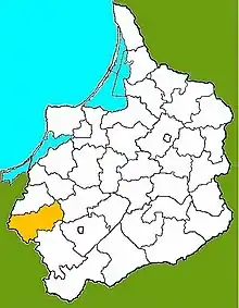 The newly delimited district of Mohrungen included the parishes of Alt Christburg, Altstadt, Arnsdorf, Eckersdorf, Herzogswalde, Jäskendorf, Kahlau, Liebstadt, Liebwalde, Miswalde, Mohrungen, Reichau, Saalfeld, Samrodt, Schnellwalde, Silberbach, Simnau, Sonnenborn und Venedien, Weinsdorf and Wilmsdorf.[2] Since 1871, the district belonged to the German Empire. After the Province of Prussia was divided into the provinces of East Prussia and West Prussia, the district of Mohrungen became part of East Prussia in 1878.