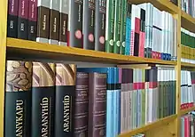 The library was established first with publications from inheritances, and then, through various purchases, donations and book exchanges.[1] The library moved to its current location in 1994, where in addition to more than 10,000 books, the latest scientific periodicals are available. The volumes contain mainly the basic works of Hungarian and universal ethnography, but they also include works of social science (anthropology, sociology, history, linguistics, local history, literature). The bequests of renowned Transylvanian ethnographers (Károly Kós Jr., Jenő Nagy, Judit Szentimrei, Olga Nagy, József Faragó etc.) make up a very valuable part of the library. The books can be read in the two reading rooms available. The accessible stock is constantly expanding through contacts with institutions and publishers in the Carpathian Basin, and the results of scientific literature and researches are constantly enriching the library.[2][13] Since 2007 the library catalog is available on the Society's website, where the most important information about the items (author, editor, title, publisher, place of publication) can be searched.[14]