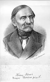 After World War II, the communist regime terminated the ethnographic education at Bolyai University in 1948, leaving Hungarian ethnographic research in Romania without any background institution. Nevertheless, ethnography was included in the subjects of other faculties (history, humanities), and research and publications were published by various institutions until 1989.[3] After the Romanian Revolution the Hungarian ethnographers felt the need to set up a research organization, which represents and advocates their interests. The Kriza János Ethnographic Society was founded in Cluj-Napoca (Hungarian: Kolozsvár) on 18 March 1990. Its initiators included ethnographers Klára Gazda, Csilla Könczei, Ferenc Pozsony and Erzsébet Zakariás. Until 1994 the institute had its first seat in the apartment of Júlia Sigmond, a puppeteer from Cluj. The founder president was Ferenc Pozsony, the first secretary was Erzsébet Zakariás, and its first honorary president was István Almási,[4] followed by Iván Balassa (1991–2002).[5] The Society was named after the Unitarian bishop János Kriza, who was a well known Transylvaninan collector of folklore in the 19th century.
