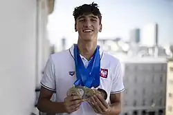 Ksawery Masiuk (born 17 December 2004) is a Polish swimmer. He won a bronze medal at the 19th FINA World Championships in Budapest in 2022, was briefly upgraded to silver after the disqualification of American swimmer Justin Ress and returned to bronze after Ress was reinstated.[1][2][3]