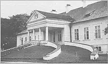 Sometime after 1924, Kandratovich returned to his estate in Paharodna near Voranava (then part of the Second Republic of Poland) and lived there until he died in 1932. He purchased the manor house and about 500 hectares (1,200 acres) of land and forests before World War I. It was a small part of the larger estate developed by Ludwik Skumin Tyszkiewicz (1748–1808). The wooden manor house was plain from the outside but richly decorated inside. Skumin Tyszkiewicz, the husband of the king's niece, built the manor in hopes that King Stanisław August Poniatowski would come to visit.[1]