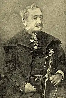 László Szőgyény-Marich de Magyar-Szőgyén et Szolgaegyháza (2 January 1806 – 19 November 1893) was a Hungarian politician, who served as Speaker of the House of Magnates between 1883 and 1884. He also functioned as Imperial and Royal Chamberlain, Privy Councillor, Knight of the Golden Fleece, board member of the Hungarian Academy of Sciences, Master of the Treasury (1884–1888) and Lord Chief Justice (1888–1893).