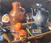 At the start of the 1970s, he returned to a series of still lives where he expresses the science of reflections in glass, as well as his science which consists in making one can feel how objects differ. He painted his last portraits. In the Jeune homme au manteau ("Young Man With Coat"), he pays homage to Titian, reaffirming, in the midst of the non-figurative art movement, his ties with the Enlightenement and Impressionist painters.