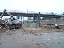 The installation of a lift to the bridge running above the platform has significantly shortened the route to the airport. The lift took over two years to complete.