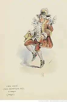 The operetta was a great success with 345 performances in its first year.[3] Among the hit tunes of the lively and witty score were the duet the "Légende de la langouste atmospherique" (the story of the atmospheric lobster); a number for the gendarme imitating drum sounds; and a yodeling song for Alexandrivoire.[3] A review of the original production said Hervé's music was "witty, joyous, really crazy, really Parisian... and wise!"[1] Carl Maria von Weber's opera Der Freischütz and Rossini's Guillaume Tell, which both feature archery contests, are parodied, as is Verdi's Il trovatore, with Dindonette doing a take-off of the "Miserere" from that opera as her beloved is imprisoned in a dungeon.[3]