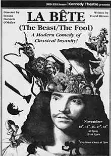 La Bête is a 1991 comedy play by American playwright David Hirson. Written in rhymed couplets of iambic pentameter, the Molière-inspired story, set in 17th-century France, pits dignified, stuffy Elomire, the head of the royal court-sponsored theatre troupe, against the foppish, frivolous street entertainer Valere, whom the troupe's patron, Prince Conti, wishes them to bring aboard. Despite Elomire's violent objections, the company is forced to perform one of Valere's own plays, which results in dramatic changes to the future of Elomire, Valere, and the company itself.