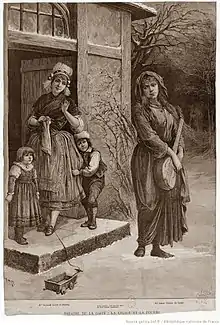 When there is nobody about, Thérèse enters. She is weary and down-at-heel, having been walking the country scraping a living as a street singer. She is too nervous to knock at the door of her cousin, and falls asleep outdoors, wrapping her tattered coat around her. She dreams that she has called on Charlotte for aid and been cruelly rejected and, in her sleep, she cries out in despair. The cry wakes the family who hurry outside to find her lying unconscious. When Thérèse wakes she finds herself in bed in the room that she occupied as a young girl, and the horror of the dream is soothed away by the care of her loving family. It is Christmas, and Thérèse is able to enjoy a simple family Christmas again.