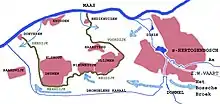 Just west of 's-Hertogenbosch the original Verster plan was about the same as that which would later be executed. The railroad was first planned to exit the city to the west. As the Ministry of Defense ordered Verster to keep 2 km clear of the Waalwijk Meuse dyke, the line was then planned through the Boschveld, a low area seasonally flooded by the Bokhovense Overlaat (Bokhoven overflow), an overflow in the dyke near Bokhoven. From there, the planned line would reach Vlijmen, Nieuwkuijk, Drunen, and the Baardwijkse Overlaat (Baardwijk Overflow). The Baardwijk Overflow called for a 'bridge' of 1 km long. The stretch through the Boschveld for a 6 m high very solid dyke with many openings. All this would cost too much, and so the plan was changed to circumvent Baardwijk to the south. Now the military intervened again to keep the railroad away from the fortifications of 's-Hertogenbosch. Therefore, the planned connection to that city would have to be made at Vught.[3] All this probably hindered the realization of the plans.