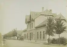 On 29 December 1888 the construction of the railway proper from Vlijmen was finally tendered. The expected price was 482,000 guilders. The tender was won by A.D. van Seters and N. van Haaren from 's-Hertogenbosch for 481,000 guilders.[32] On 14 October 1890 the stretch from Vlijmen to 's-Hertogenbosch was officially opened.[33] At the time it was connected to the old railway station of 's-Hertogenbosch.[34]
