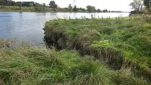 The River Nith is one of only 15 or so rivers in the UK that exhibit tidal surge or aegir, better known as a tidal Bore. The incoming tide is forced by the shape of the land to form a wave of water that travels against the current up this funnel-shaped river. The surging water can often be heard before it is seen. The shallow Nith flows into the wide, flat Solway estuary and when conditions are right, as with high spring tides and with favourable winds, the 'Bore' is created, scouring the river banks in its progress inland and potentially interfering with boats on the river and those that were moored at the time.[21]