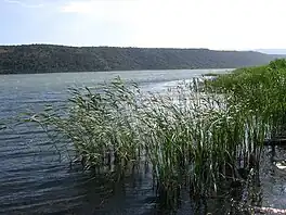 Lake Šas (Serbian: Шаско jезеро, romanized: Šasko jezero; Albanian: Liqeni i Shasit) is a lake located north-east of Ulcinj, near the village of Šas, in Montenegro. It is bordered geographically by Briska Gora (Mali i Brisë) to the southwest, Fraskanjelsko Polje (Këneta e Fraskanjellit) to the east, Ambulsko Brdo (Mali i Amullit) and Šasko Brdo (Mali i Shasit) to the northeast and the Brisko Polje (Fusha e Brisë) to the northwest. Geopolitically, Briska Gora lies to the southwest of Lake Šas, Fraskanjel lies to the east and Ambula and Šas to the northeast. The area of this lake is 5.5 km², it is 3.2 km long and 1.5 km wide. The max depth is 7.8 m. The shore of the lake is about 8.6 km.[1]