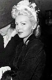 Turner's rise to fame and establishment as a Hollywood sex symbol[13] following They Won't Forget was concurrent with World War II, and she became a prominent pin-up model at the time, appearing painted on the noses of U.S. fighter planes bearing the title "Tempest Turner."[14] MGM appointed her to tour the United States West Coast and sell war bonds in various cities in the summer of 1942.[15] During the tour, Turner began giving out kisses to the highest buyers, and by the end of the 10-week tour, had sold $5.25 million (equivalent to $94 million in 2022) in war bonds.[15]