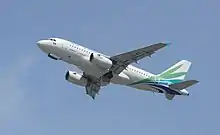 Lanmei Airlines Airbus A319 taking off from Suvarnabhumi Airport, Bangkok