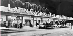 The Latin Casino was a Philadelphia-area nightclub that first opened in 1944 as the "Latin" located at 1309 Walnut Street in Philadelphia, Pennsylvania. Many top entertainers performed at the Latin including Harry Belafonte, Jimmy Durante, Sammy Davis Jr., Dean Martin, Richard Pryor, Jerry Lewis, Milton Berle, Lena Horne, Pearl Bailey, Louis Armstrong, Lionel Hampton, Jack Jones, and Joey Bishop. The Latin was a very popular Center City nightclub for a decade.[2] In 1960, owners Stanley and Bea Carroll (of "Carroll's"), David Dushoff, and Daniel "Dallas" Gerson relocated the nightclub to 2235 Route 70 in nearby Cherry Hill, New Jersey, and built a plush 1,500-seat, Vegas-style[3] dinner theater renamed from the "Latin" to the "Latin Casino", although casino gambling was not included. It was considered one of the fanciest, hippest dinner nightclub experiences of that time featuring dinner, drinks and a showcase of top entertainment, and was called "The Showplace of the Stars".[4]