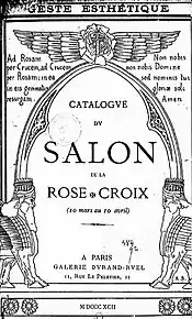 Satie wrote the score for Le Fils des étoiles during his short-lived involvement (1891–1892) as official composer and chapelmaster of the Mystic Order of the Rose + Croix. This esoteric-religious-artistic group, led by the flamboyant Péladan, aimed to "ruin realism, reform Latin taste and create a school of idealist art" in 1890s France.[10] Particular reverence was paid to Symbolist art and to the music of Richard Wagner, whom the Rosicrucians valued above all composers.[11] After the Comédie-Française in Paris rejected the script for Le Fils des etoiles in 1891, Péladan gained financial backing from Count Antoine de La Rochefoucauld to launch the annual Salon de la Rose + Croix (1892–1897) for the promotion of his work and ideas. The premiere staging of Le Fils would feature prominently in the first Rosicrucian salon.