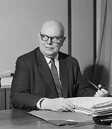 He was born in Kristiania, and moved to Bærum in 1926. He had an education as a telegrapher, and also took the cand.jur. degree in 1924. He chaired of the Labour Party chapter in Bærum from 1930 to 1935, and was elected to serve in Bærum municipal council in 1932.[1] During the occupation of Norway by Nazi Germany he was imprisoned in Bredtveit concentration camp from 30 March 1943, then in Berg concentration camp from 26 July 1944 to 26 March 1945.[2]