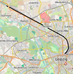 The Leipzig-Wahren–Leipzig Hbf railway is an electrified main line in the German state of Saxony. It runs from Leipzig-Wahren to Leipzig Hauptbahnhof and is part of the original route of the Magdeburg–Leipzig railway. Today it is used exclusively by services of the S-Bahn Mitteldeutschland.