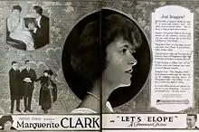 Let's Elope is a lost[2] 1919 American silent comedy film starring Marguerite Clark and directed by John S. Robertson. It was produced by Famous Players–Lasky and released through Paramount Pictures. The film is based on The Naughty Wife by Frederick J. Jackson.[3]